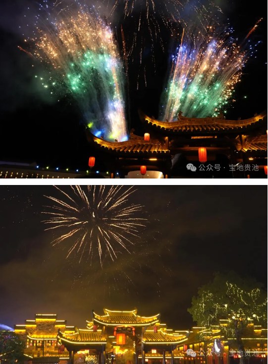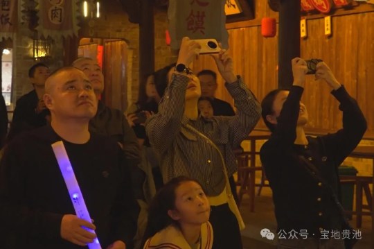 夜幕深,鼓點落,在眾多游客的翹首以盼下,“點點星光”從地面緩緩升起,于夜空中列隊集合、緩緩鋪陳,不少市民和游客前來觀看,紛紛拿出手機記錄下這難得的一刻,打卡留念。這支來自廣東深圳的無人機團隊以夜空為幕布,隊形變換時,各種生動有趣的圖案躍然“紙”上,猶如漫天繁星揮舞,讓人目不暇接。忽明忽暗間,閃爍的燈光配合乍隱乍現(xiàn)的表演效果引發(fā)了游客陣陣驚呼?!疤氐乩笥岩黄饋砜吹模瑘雒婧軌延^!沒想到我們貴池的景區(qū)也這么‘時髦’了?!笔忻裢袅嵋贿吪e起手機拍照記錄,一邊笑道。