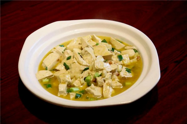 梅村豆腐是貴池特產(chǎn)之一,由本土優(yōu)質(zhì)大豆和霄坑大峽谷山泉水加工制作而成,口感鮮嫩爽滑,具有獨(dú)特的豆香味,顏色呈白色或略帶淡黃色。“梅村豆腐撕”就是利用當(dāng)?shù)氐亩垢娃r(nóng)家自己腌制的火腿,把豆腐用手撕成小塊和火腿粒翻炒出香氣后,再用火腿高湯燜煮出的一道當(dāng)?shù)貏?chuàng)新名菜。