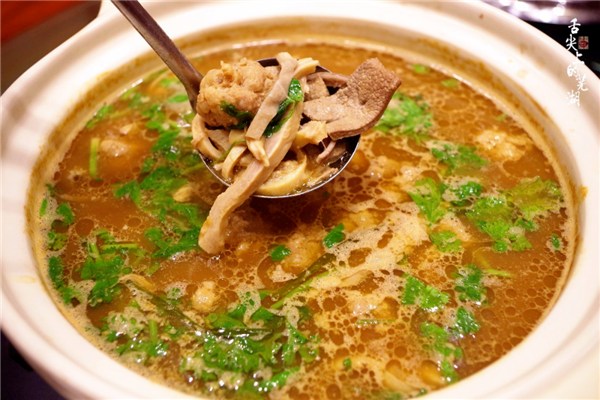 在貴池人的記憶里,“殺豬湯”是一種特別的存在,它不屬于任何一個(gè)節(jié)日,卻有著與節(jié)日等同的莊重感。過(guò)去農(nóng)村生活條件差,幾乎家家戶戶都養(yǎng)豬,臨過(guò)年時(shí),就請(qǐng)殺豬師傅把豬殺了,能賣的全都賣了換錢,只剩下豬頭、豬肝、豬血、豬腎不怎么有人要,主人家便把它們切成薄片,帶芡粉氽成一鍋湯,用來(lái)招待殺豬師傅和前來(lái)幫忙的親友鄰居,這道菜就叫殺豬湯。