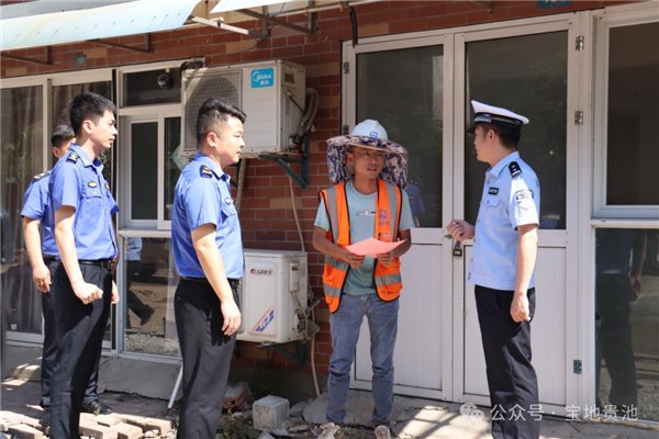 當天的檢查深入住宅小區(qū)、各建筑工地等建筑垃圾產(chǎn)生源頭,每到一處,都以“剛?cè)岵钡膱?zhí)法模式開展工作,既守住法律底線,又傳遞管理溫度。在主城區(qū)新城明珠小區(qū)排水防澇工程施工現(xiàn)場,身著制服的執(zhí)法人員正在對進入小區(qū)的運輸車輛進行“全身體檢”,仔細檢查車輛運輸資質(zhì)是否合法、密閉措施是否到位、行駛路線是否合規(guī)。在杏花村街道洋浦小區(qū)老舊小區(qū)改造工地,執(zhí)法人員指著百米外的學校標識提醒項目負責人:“上下學時段必須安排安全員值守,運輸車輛盡量避開高峰期。”在水電八局池州市人民醫(yī)院地下停車場項目工地,執(zhí)法人員一一檢查項目現(xiàn)場霧炮機、噴淋系統(tǒng)等揚塵處理設施運行情況……