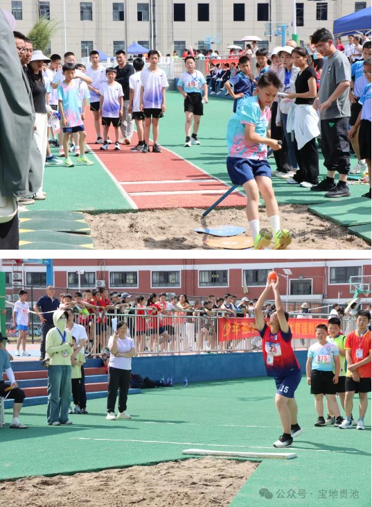 另一邊的賽場(chǎng)同樣精彩非凡。撐桿跳遠(yuǎn)比賽中,參賽選手手持撐桿,助跑、加速、起跳,一氣呵成,在用撐桿蓄力的瞬間,借著彈力騰空而起,在空中劃出優(yōu)美的弧線。短跨接力的賽道上,各隊(duì)選手默契配合,既要像短跑般快速?zèng)_刺,又要靈活跨越障礙,為團(tuán)隊(duì)榮譽(yù)奮勇向前。此外,實(shí)心球、跳遠(yuǎn)等項(xiàng)目也在有序進(jìn)行中,小選手們?cè)诟髯缘馁悎?chǎng)上展現(xiàn)力量與技巧,以飽滿的熱情參與其中。
