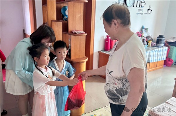 當(dāng)天下午,該社區(qū)老年食堂里熱氣蒸騰,志愿者、小朋友們圍坐在一起包粽子,翠綠的粽葉里包裹著肉餡、豆沙餡,也裹著孩子們的祝福。隨后,在一聲聲“祝爺爺奶奶端午安康!”的稚嫩童聲中,香糯的“福粽”被送往該社區(qū)需要幫助的老人家中。“這米是百家湊的,粽子是小朋友們親自包了送來的,這個(gè)端午真是暖到心里去了?!?9歲的獨(dú)居老人周玉年說。
