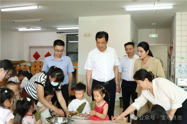 當(dāng)天,洋浦幼兒園內(nèi)充滿歡聲笑語(yǔ),孩子們?cè)诶蠋煹膸ьI(lǐng)下正在進(jìn)行包粽子、制作艾草花環(huán)等端午節(jié)特色活動(dòng)。錢(qián)松一行走進(jìn)園內(nèi)各功能區(qū),詳細(xì)了解學(xué)校教育教學(xué)、師資配備、食堂管理等方面情況,并和孩子們親切互動(dòng),衷心祝愿他們節(jié)日快樂(lè)、健康成長(zhǎng)。