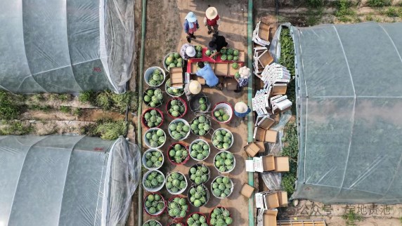 初夏時(shí)節(jié),貴池田野間綠意盎然,走進(jìn)烏沙鎮(zhèn)烏沙社區(qū)西瓜種植基地,480個(gè)連片的西瓜大棚在陽光下泛著銀光整齊排列,圓滾滾的美都西瓜綴滿藤蔓,迎來豐收季。5月中旬以來,這批皮薄汁甜的西瓜搶“鮮”上市,不僅讓消費(fèi)者嘗到了“舌尖上的清涼”,更成為當(dāng)?shù)剜l(xiāng)村振興的“綠色引擎”,為村民增收、產(chǎn)業(yè)升級(jí)注入新活力。