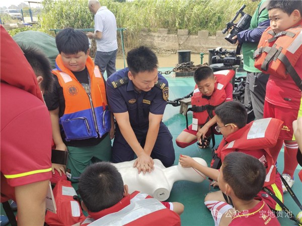 登岸后,智能救生圈的操作演示吸引了孩子們的目光——這個(gè)能自動(dòng)前往落水者身邊的“黑科技”,讓大家嘖嘖稱奇;而無人機(jī)巡航展示,則從空中視角展現(xiàn)了海事監(jiān)管的現(xiàn)代化手段。此外,執(zhí)法人員還現(xiàn)場(chǎng)示范了落水者救上岸后的心肺復(fù)蘇操作,進(jìn)一步提升孩子們的應(yīng)急救援技能。