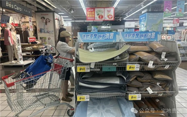 隨著氣溫持續(xù)攀升,許多各具功能的清涼用品也迎來銷售高峰,成為消費者的“新寵”。在主城區(qū)大潤發(fā)超市內(nèi),清涼用品專區(qū)消費者絡(luò)繹不絕。不少消費者或?qū)鱿侀_,用手感受產(chǎn)品質(zhì)量;或仔細(xì)查看產(chǎn)品標(biāo)簽,對比產(chǎn)品品質(zhì)。售貨員則穿梭在消費者之間,為顧客介紹各類“清涼專區(qū)”產(chǎn)品特點。