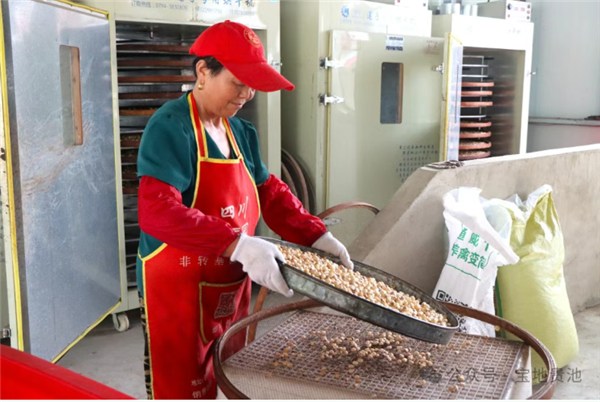 進(jìn)入村頭的蓮子加工廠,一筐筐帶著露水的新鮮蓮蓬整齊碼放,空氣中彌漫著淡淡的蓮香,剝殼、分揀、去皮、烘干……工人們分工協(xié)作,每道工序都一絲不茍,“我專做蓮子剝殼的活兒,一天能掙170元,賺錢的同時(shí)還能照顧家庭,兩全其美?!贝迕駞切√m笑著說,現(xiàn)在廠里像她這樣在家門口務(wù)工的村民有10余人,每人每年能增收1萬多元。