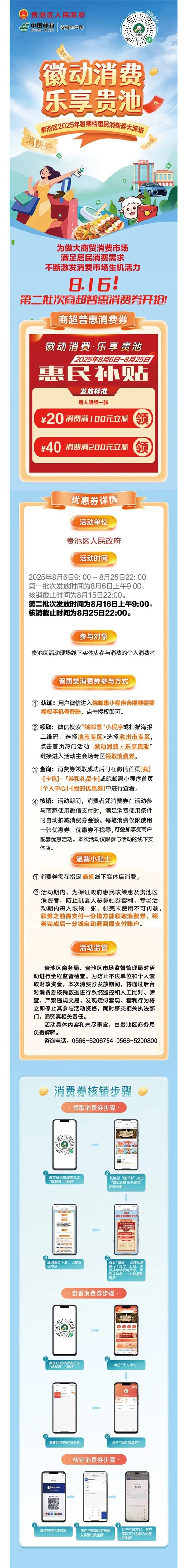 “徽動(dòng)消費(fèi)·樂(lè)享貴池”之“激情一夏”商超普惠消費(fèi)券發(fā)放活動(dòng)已于8月6日啟動(dòng)。