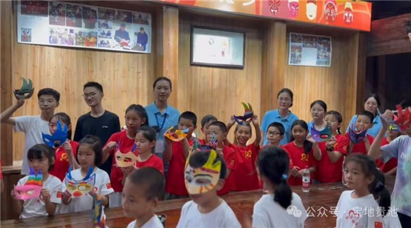 8月8日,馬衙街道金山村新建成的金山農(nóng)事服務(wù)中心2號樓熱鬧十足,馬衙街道首屆暑期托管班成果匯報演出暨表彰典禮在這里舉辦?!皩O女第一次上臺,看她抬頭挺胸的樣兒,太可愛了!”擠在過道里的金山村王大爺喜笑顏開地舉著手機(jī)為孫女錄像。談起本次托管班中印象最深刻的課程,現(xiàn)場的孩子們紛紛打開了話匣子:“我最喜歡用黏土做文物的那節(jié)課!”金山村吳芠萱小朋友對秀山門博物館講師帶來的“解碼池州·行走的文化地圖”巡講歷歷在目;“我現(xiàn)在是家門口老祠堂的小小講解員啦!”姜梓軒大聲匯報,他通過碧山社區(qū)志愿者吳星能設(shè)計的“古建筑拼圖”課學(xué)會了本地老宅的榫卯技藝……