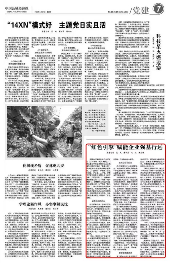 8月21日,中國縣域經(jīng)濟報刊登文章《“紅色引擎”賦能企業(yè)強基行遠》,全文如下