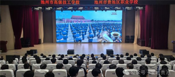 貴池各所學校的青少年兒童也通過教室多媒體大屏等共同上了一堂直抵人心的“沉浸式”思政課,愛黨愛國愛軍的紅色“種子”悄然種下。當先進的預警指揮機、殲擊機、轟炸機等組成的空中梯隊劃破長空,貴池區(qū)秋浦小學一群“10后”的孩子們直觀地感受到了歷史的厚重和民族精神的偉大;而對于正在軍訓的池州市第八中學高一新生們來說,這更是一堂意義非凡的“開學第一課”,教室里學生們端正的坐姿與屏幕中參閱隊員挺拔的軍姿隔空呼應;在池州市高級技工學校,七百余名師生齊聚報告廳,多次自發(fā)響起熱烈的掌聲……“雖然這幾天站軍姿、走正步很辛苦,但是看見閱兵場上的軍人身姿挺拔如松、眼神堅毅如鋼,我渴望成為他們那樣的鐵血軍人,扛起保家衛(wèi)國的責任。”高一新生章涵喊出了自己的夢想。