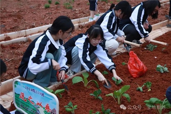 據(jù)了解,該校勞動教育實踐基地占地約1500平方米,共劃分了40塊小菜地供高一、高二年級分別使用。種植品種則根據(jù)農(nóng)時,由全班學(xué)生討論共同確定勞動方案,并利用每周四活動課時間定期照料經(jīng)營。每一株蔬菜都有自己的“小主人”,成熟后全權(quán)交給學(xué)生自己使用處理,既可以自主出售,也可以贈送或分享食用,與家人朋友共同體驗勞動收獲的喜悅。