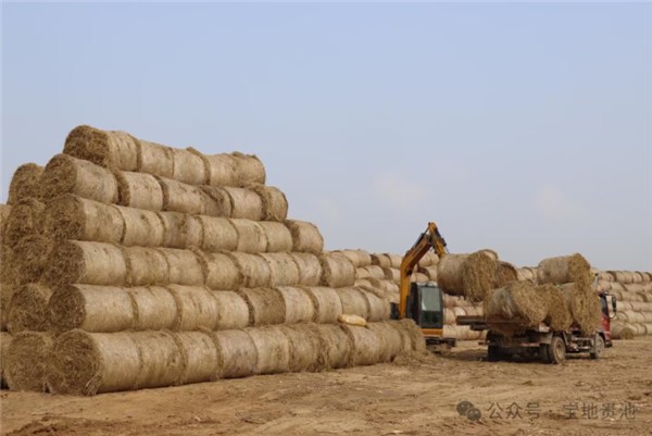 離田后的秸稈,踏上了“變廢為寶”的旅程。不遠(yuǎn)處,眾豐公司今年在秋江街道新建的秸稈綜合利用飼料工廠內(nèi),工人們正熟練地將收來的秸稈“喂”入生產(chǎn)設(shè)備,堅(jiān)硬的秸稈經(jīng)過加工,瞬間變得柔軟細(xì)碎,隨后被迅速打捆、包膜。這些包裹嚴(yán)實(shí)的草捆經(jīng)過發(fā)酵,將變身成為牛羊禽類喜愛的“營養(yǎng)罐頭”。