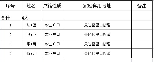 里山街道2019年農(nóng)村計劃生育特殊困難家庭對象花名冊