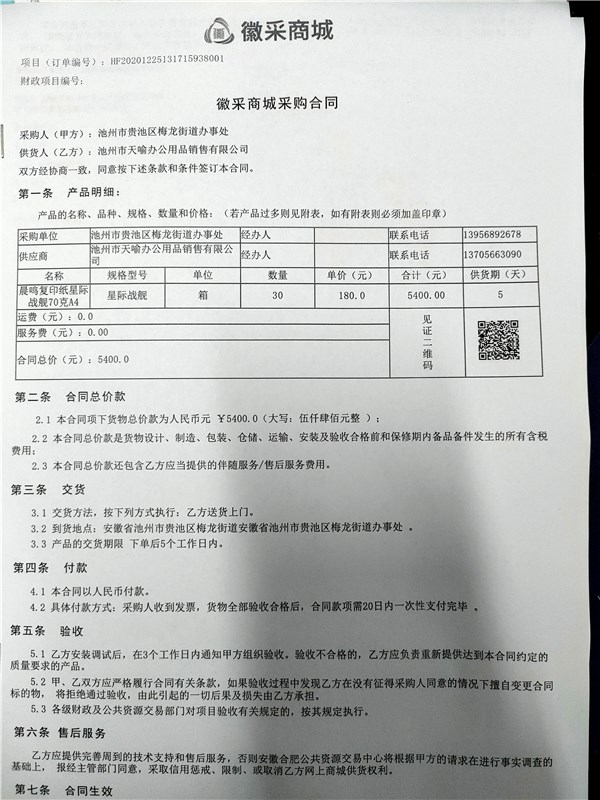 名稱: 【采購合同】梅龍街道2020年采購合同 文號: