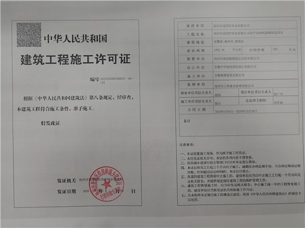 | 名稱: | 池州市適四時(shí)農(nóng)業(yè)有限公司年產(chǎn)3000噸黃精制品項(xiàng)目《建筑工程施工許可證》批后公布 | 文號(hào): | 無(wú) |
