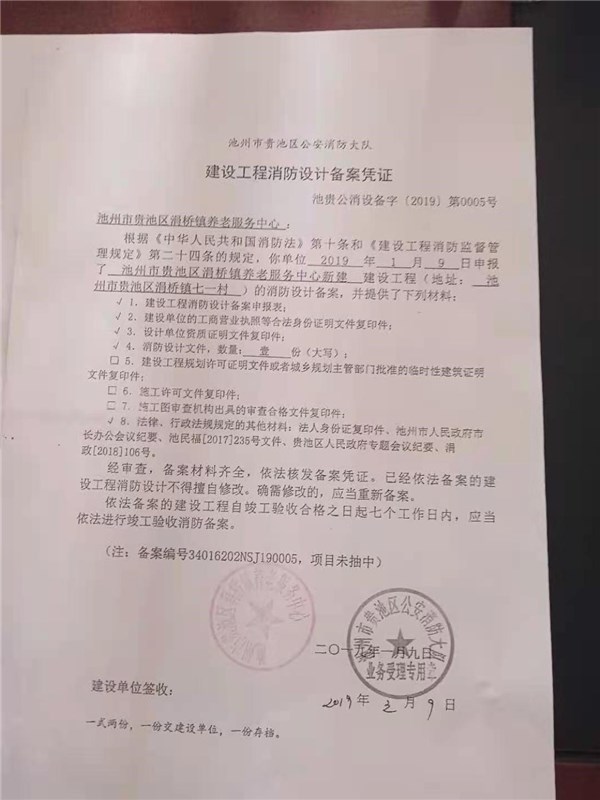 貴池區(qū)涓橋養(yǎng)老服務(wù)中心消防許可