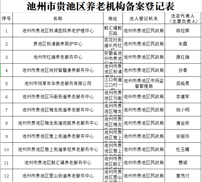 名稱: 池州市貴池區(qū)養(yǎng)老機(jī)構(gòu)備案登記表 文號(hào): 無(wú)