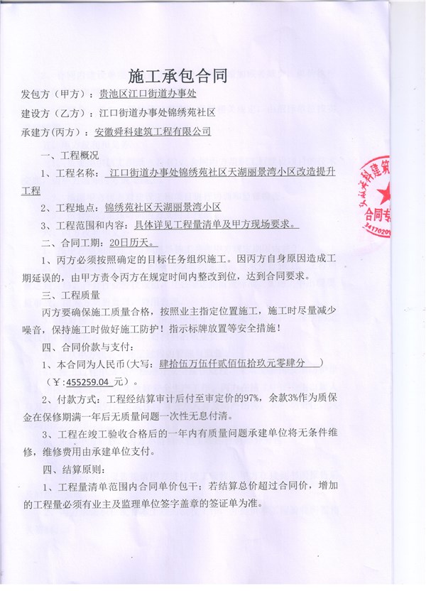 名稱: 天湖麗景灣小區(qū)改造合同 文號(hào): 無(wú)