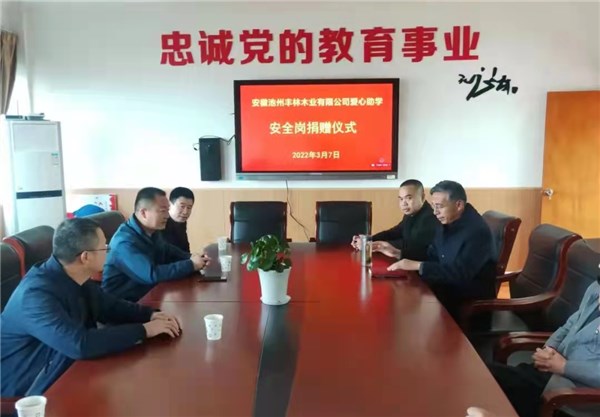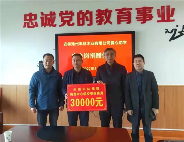 在捐贈(zèng)儀式上,梅龍中心學(xué)校校長(zhǎng)傅國(guó)林對(duì)池州豐林的博施濟(jì)眾、急公好施之舉表示深深的謝意。他說道,近年來,由于受政策和學(xué)校條件的限制,中心學(xué)校本部的安全崗一直只有一名保安人員在執(zhí)勤,隨著現(xiàn)在生源的增加,保安力量明顯偏弱,平時(shí)只好再抽調(diào)老師加強(qiáng)安保工作,現(xiàn)在好了,有了池州豐林的資助,學(xué)??梢耘c保安公司協(xié)談,再增加一名保安,必將進(jìn)一步筑牢校園安全防線,學(xué)校的老師也能更好地集中精力投入到教學(xué)中,所以真的非常感謝池州豐林本次的義舉,為學(xué)校解決了一個(gè)實(shí)實(shí)在在的大難題。作為本次捐助的企業(yè)代表,池州豐林木業(yè)有限公司總經(jīng)理李天華表示,作為一個(gè)有社會(huì)當(dāng)擔(dān)的企業(yè),他不但有經(jīng)濟(jì)發(fā)展責(zé)任,更應(yīng)該有社會(huì)公益責(zé)任。池州豐林將在上級(jí)黨委、政府和集團(tuán)公司的領(lǐng)導(dǎo)下,努力踐行以“誠(chéng)信、責(zé)任、務(wù)實(shí)、創(chuàng)新、寬容”為核心的企業(yè)文化,堅(jiān)持綠色經(jīng)營(yíng),規(guī)范運(yùn)作,科學(xué)發(fā)展,為美麗池州的社會(huì)經(jīng)濟(jì)發(fā)展貢獻(xiàn)豐林人最大力量。