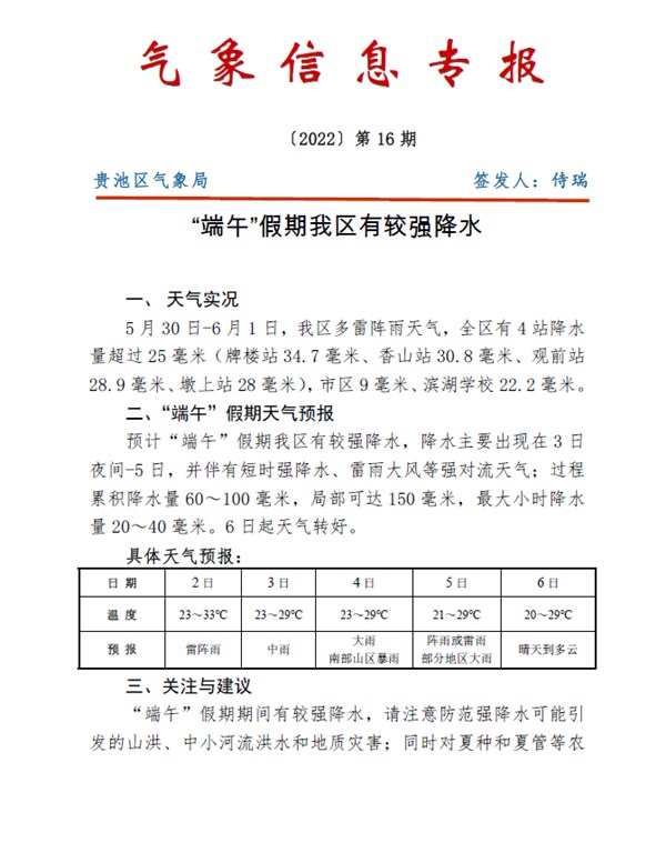 名稱: 【天氣預警】“端午”假期我區(qū)有較強降水 文號: