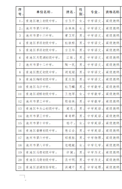 關(guān)于方玉平等68位同志具備中小學(xué)高級教師專業(yè)技術(shù)資格的通知