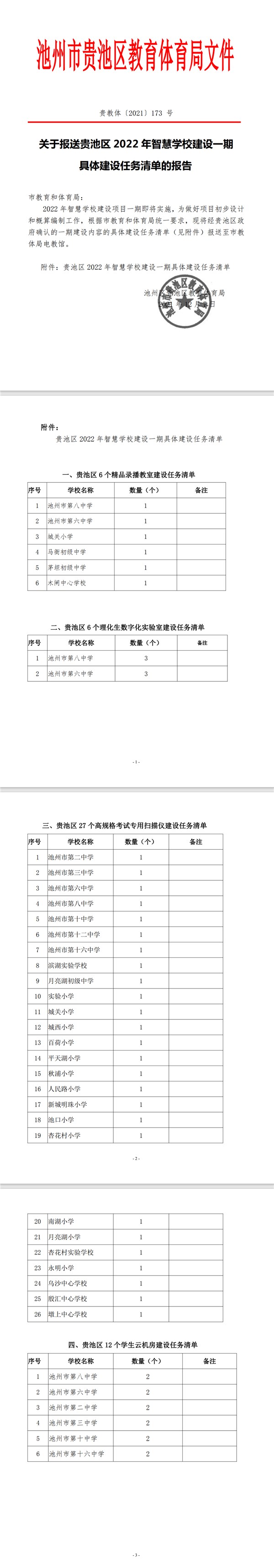 名稱: 貴池區(qū)2022年智慧學(xué)校建設(shè)一期具體建設(shè)任務(wù)清單 文號: