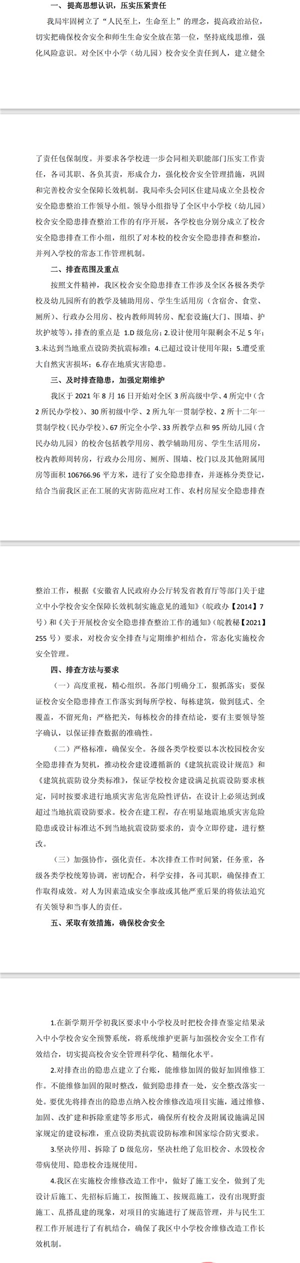 名稱: 2021年度中小學(xué)校(幼兒園)校舍安全隱患排查情況 文號: