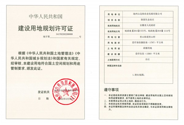 名稱: 建設用地規(guī)劃許可證(徐園生態(tài)農莊) 文號: