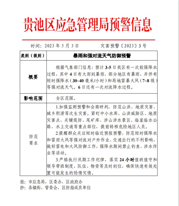 名稱: 暴雨和強對流天氣防御預警 文號: