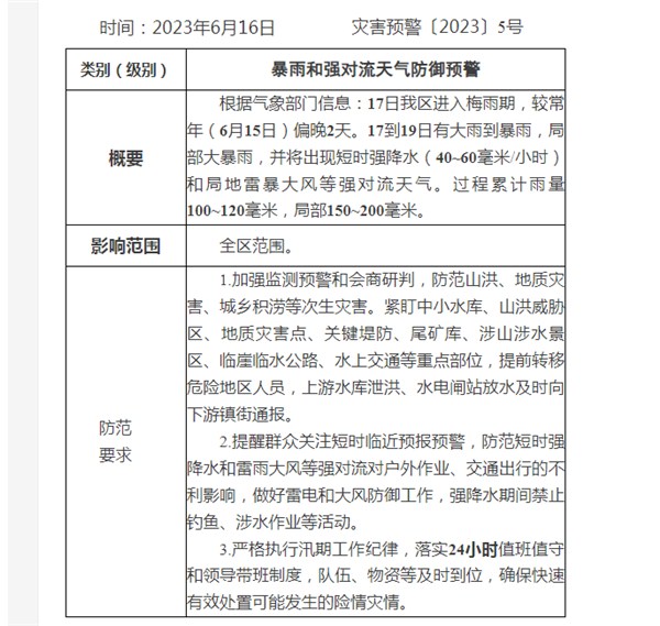 名稱: 暴雨和強(qiáng)對(duì)流天氣防御預(yù)警 文號(hào):