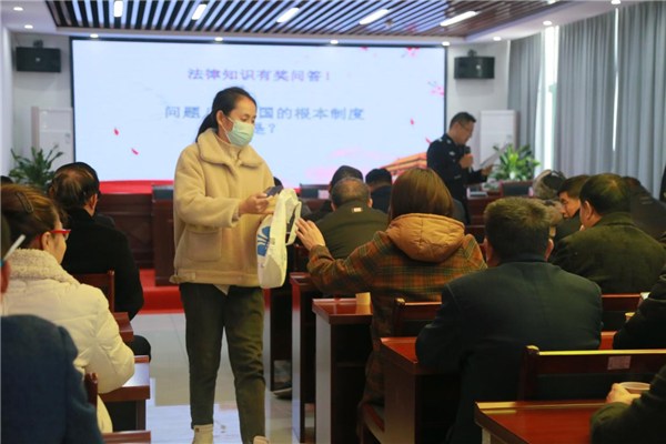 二、問答小競賽,得獎又普法。12月4日下午,梅龍司法所邀請池州市貴池區(qū)司法所至梅龍街道錢溪社區(qū)開展憲法宣傳集中教育,邀請了錢溪社區(qū)的網(wǎng)格員、樓棟長及居民參與?,F(xiàn)場進(jìn)行了法律知識問答活動,“請問,我國憲法修訂了幾次?”,“土地所有權(quán)可不可以抵押?”,“《民法典》正式施行于哪一年幾月幾號?共有多少篇,多少條?”等各類法律知識小問題一出,大家的回答聲此起彼伏,梅龍司法所長趙維維同志在公布正確答案后,也向大家普及了問題中的法律小知識,并向回答正確的居民送上了法律知識讀本和精美紀(jì)念品。“活動現(xiàn)場的答題環(huán)節(jié)既新穎又有趣,既給大家普及了法律小知識、又拿到了紀(jì)念獎品”參與活動的居民群眾紛紛給予好評。