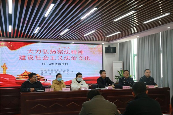 “國家憲法日”宣傳活動是為了加強憲法學(xué)習(xí)宣傳,強化轄區(qū)群眾憲法意識,弘揚憲法精神,為社會主義法治文化建設(shè)夯實群眾基礎(chǔ),本次活動參與群眾約200人,共分發(fā)普法讀本,法律知識手冊等各類宣傳手冊300余份,發(fā)放紀(jì)念品50份。接下來梅龍街道將持續(xù)做好普法宣傳、公眾法律服務(wù)等工作,為建設(shè)好平安貴池、平安梅龍營造良好的法治環(huán)境。