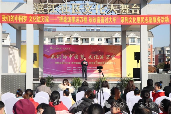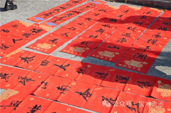舞臺(tái)區(qū)好戲連臺(tái),引得觀眾掌聲不斷;而另一邊由貴池區(qū)文化館和區(qū)書法家協(xié)會(huì)的書法老師們組成的寫春聯(lián)區(qū)更是人頭攢動(dòng),大家都想得到一份“墨寶”,接收新年喜氣。