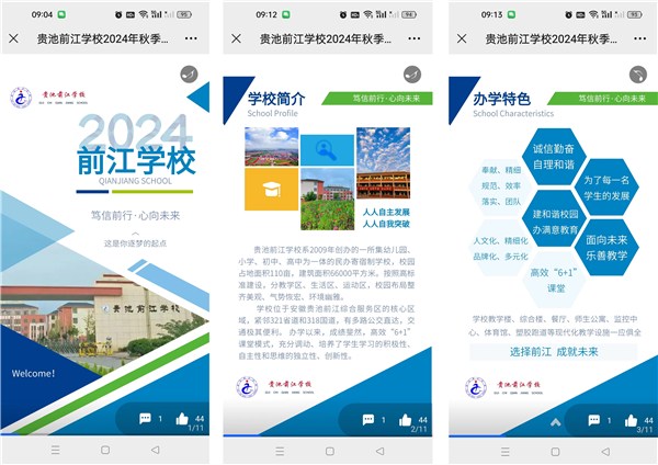 辦學特色> >奉獻、精細、規(guī)范、效率、落實、團隊;人文化、精細化、品牌化、多元化;誠信勤奮、自理和諧;建和諧校園、辦滿意教育;為了每一名學生的發(fā)展;面向未來,樂善教學;高效“6+1課堂;學校教學樓、綜合樓、餐廳、師生公寓、監(jiān)控中心、體育館、塑膠跑道等現(xiàn)代化教學設施一應俱全。選擇前江 成就未來。校園環(huán)境> >園林式生態(tài)校園。綠草如茵、空氣清新、環(huán)境優(yōu)美、設施完善。