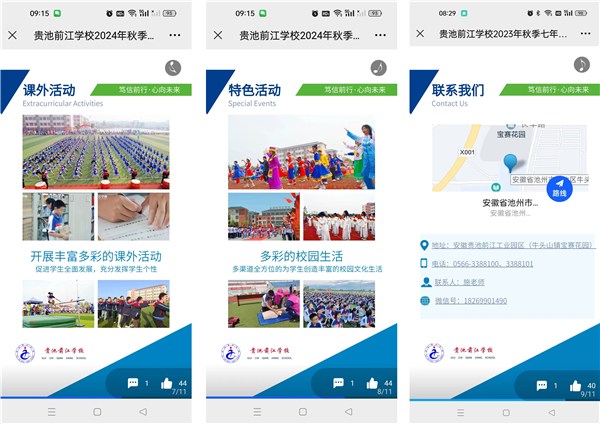 學校簡介> >貴池前江學校系2009年創(chuàng)辦的一所集幼兒園、小學、初中、高中為一體的民辦寄宿制學校,校園占地面積110畝,建筑面積66000平方米。按照高標準建設,分教學區(qū)、生活區(qū)、運動區(qū), 校園布局整齊美觀、氣勢恢宏、環(huán)境幽雅。學校位于安徽貴池前江綜合服務區(qū)的核心區(qū)域,緊鄰321省道和318國道,有多路公交直達,交通極其便利。辦學以來,成績斐然,高效“6+1”課堂模式,充分調(diào)動、培養(yǎng)了學生學習的積極性、自主性和思維的獨立性、創(chuàng)新性。