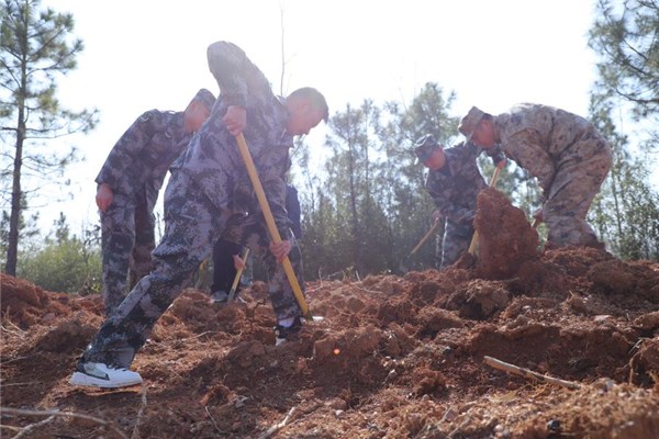 遠(yuǎn)遠(yuǎn)望去,只見這群身著迷彩的老兵們幾人一組、分工明確、行動迅速,大家揮鍬弄鏟、覆土培基,手腳沾滿泥土、臉上揮汗如雨、動作激情四射,充分發(fā)揚(yáng)著退役軍人雷厲風(fēng)行、吃苦耐勞的戰(zhàn)斗作風(fēng)。