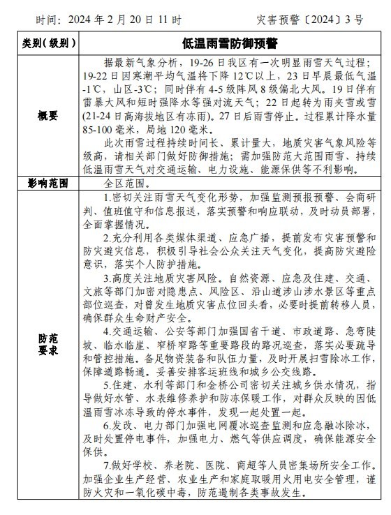 名稱: 【預(yù)警信息】低溫雨雪防御預(yù)警 文號(hào):
