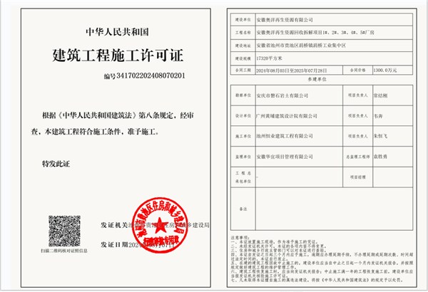 | 名稱: | 安徽奧洋再生資源回收拆解項(xiàng)目1#、2#、3#、4#、5#廠房項(xiàng)目 《建筑工程施工許可證》批后公布 | 文號: | 無 |