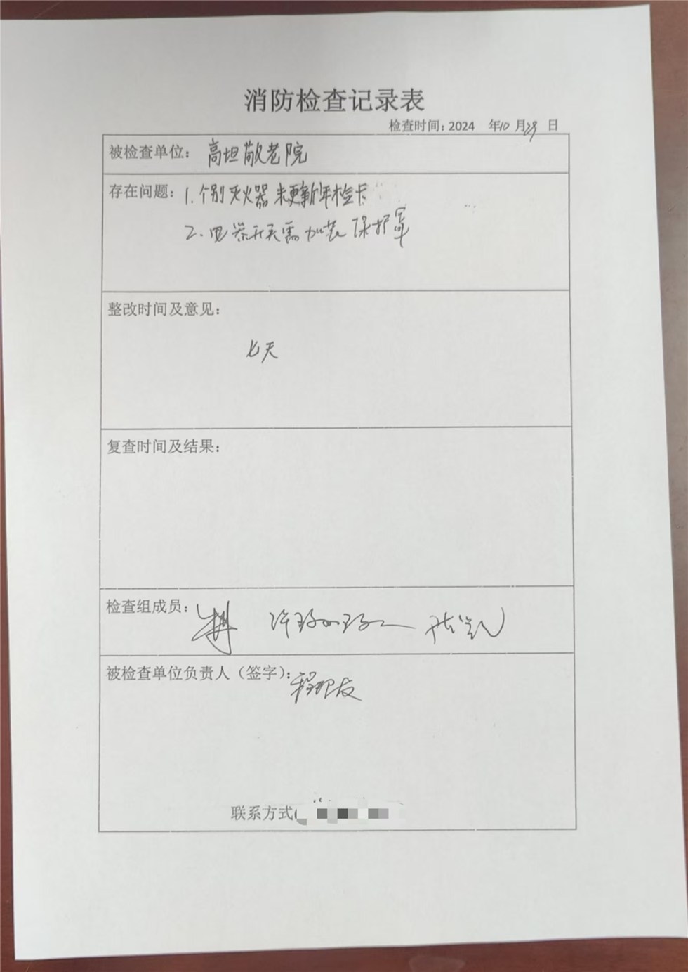 梅村鎮(zhèn)敬老院消防檢查記錄