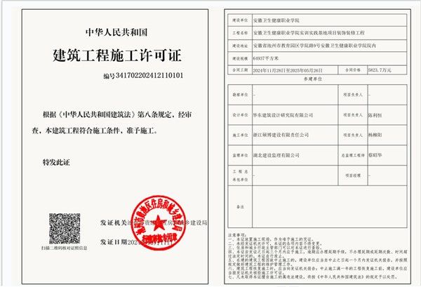 建設(shè)項目:安徽衛(wèi)生健康職業(yè)學(xué)院實訓(xùn)實踐基地項目裝飾裝修工程