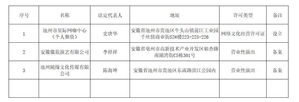 2025年1月20日-2025年1月26日貴池區(qū)文旅局行政審批事項公示