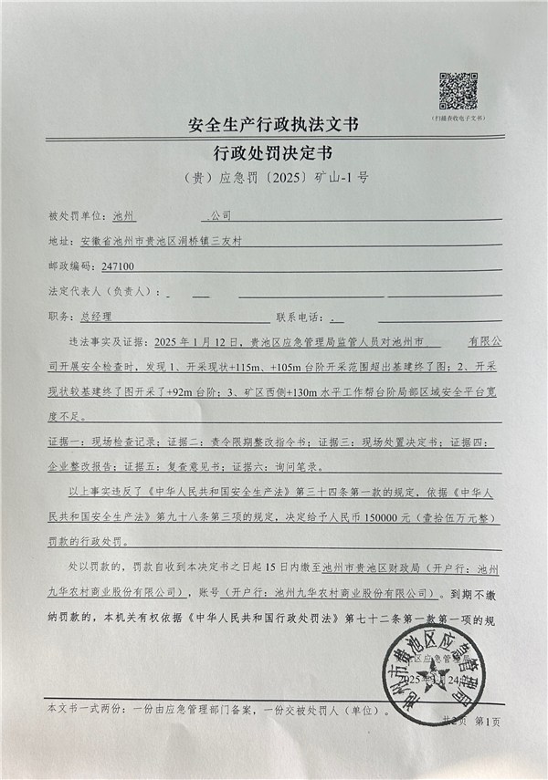 名稱: (貴)應(yīng)急罰〔2025〕礦山-1 號(hào) 文號(hào): 無(wú)