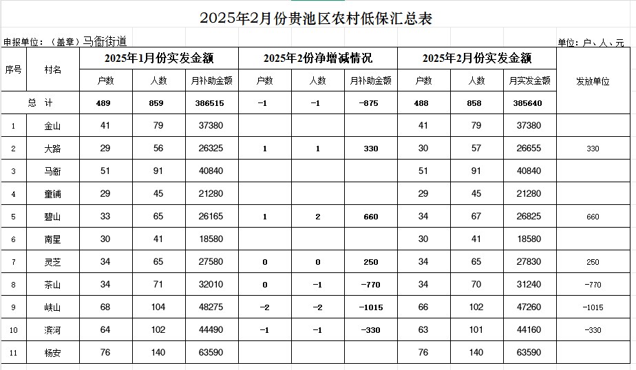 馬衙街道2025年2月份農(nóng)村低保匯總表