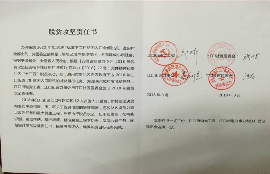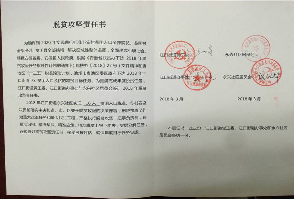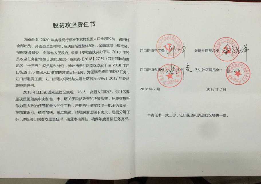 2018年街道與各社區(qū)的脫貧攻堅目標(biāo)責(zé)任書
