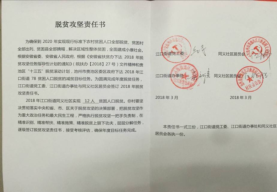 名稱: 2018年街道與各社區(qū)的脫貧攻堅目標(biāo)責(zé)任書 文號: