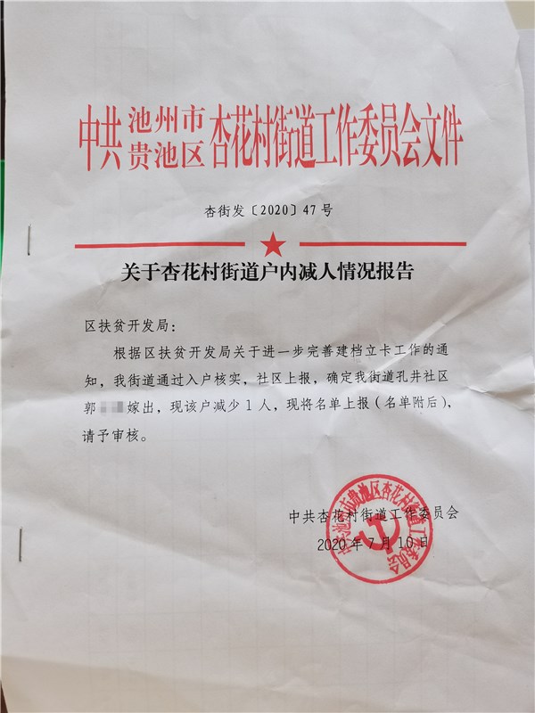 名稱: 杏花村街道2020年第三季度貧困退出及新增情況 文號: