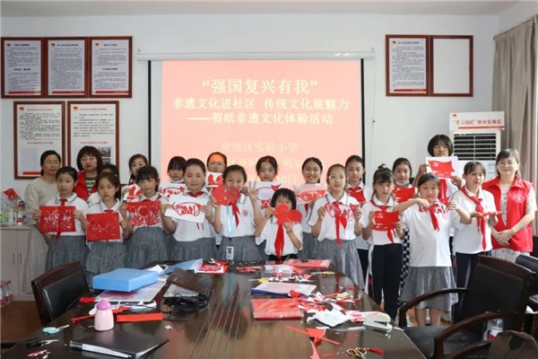 為豐富社區(qū)居民的精神文化生活,發(fā)揚和繼承優(yōu)秀的傳統(tǒng)文化,6月10日下午,貴池實驗小學組織剪紙社團師生代表前往秋江社區(qū)開展了剪紙非遺進社區(qū)活動。