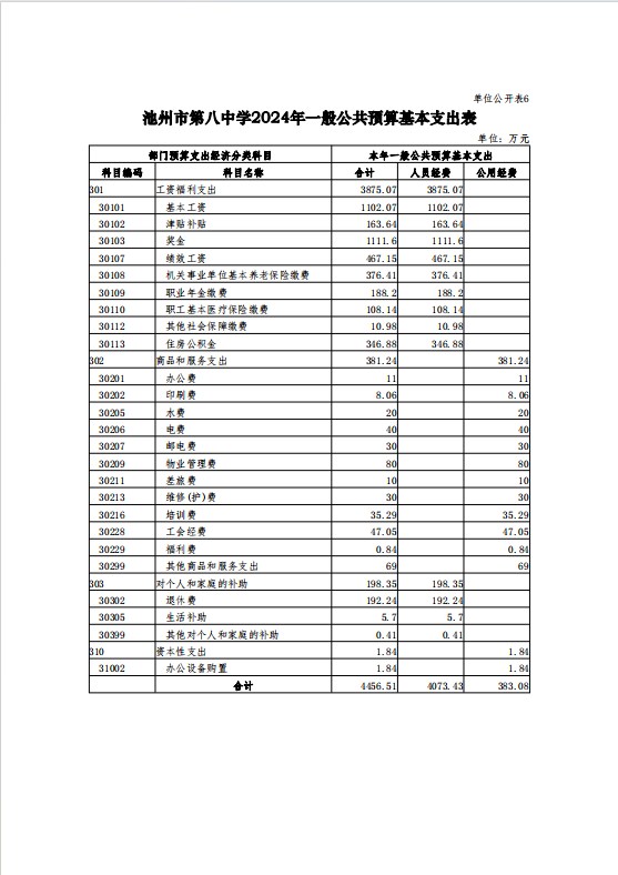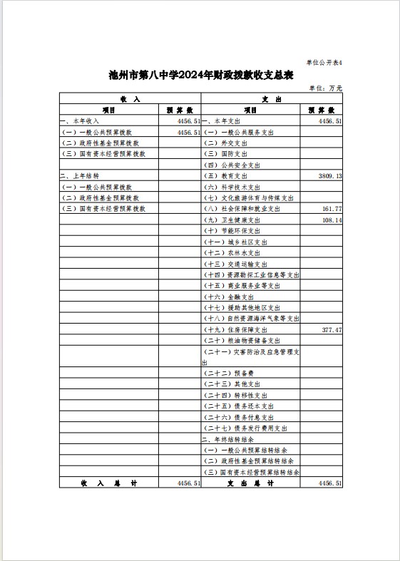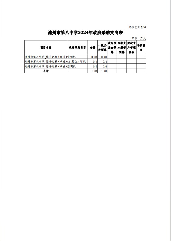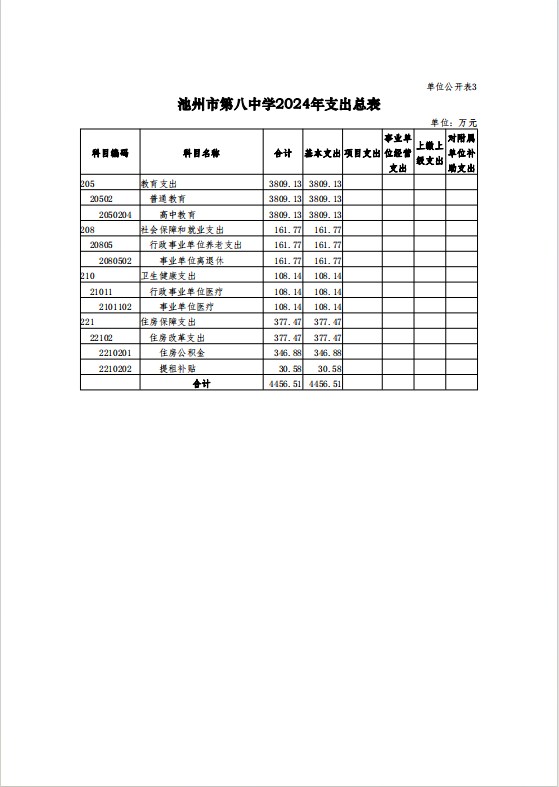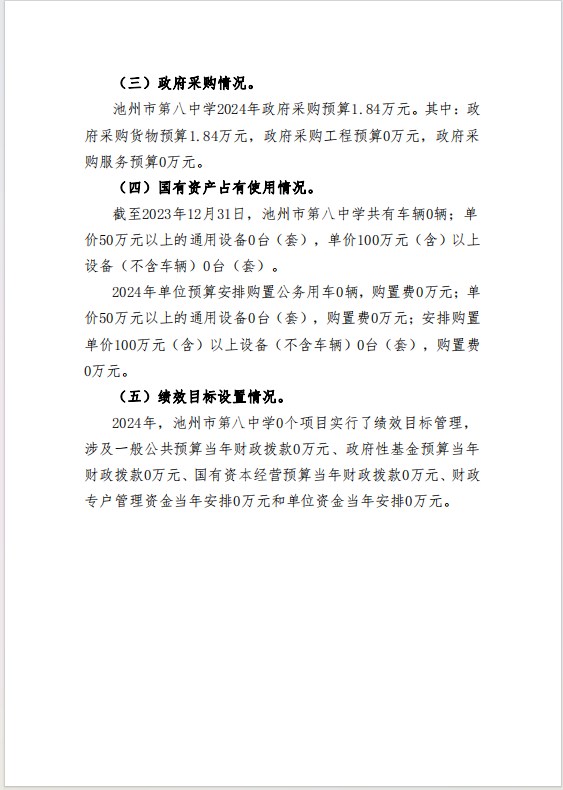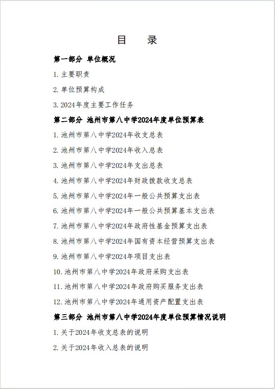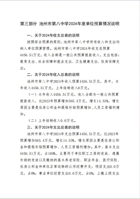 池州市第八中學(xué)2024年度單位預(yù)算公開