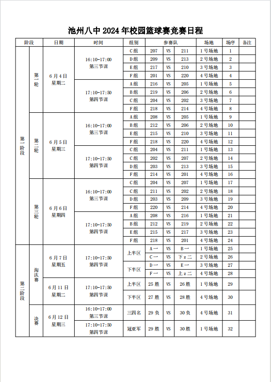 池州市第八中學2024年校園籃球聯(lián)賽秩序冊